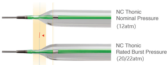 NC Thonic® menawarkan stabilitas luar biasa pada tekanan tinggi. Balon pada kateter ini mampu menahan tekanan yang sangat tinggi, menjadikannya pilihan utama untuk prosedur yang memerlukan tekanan ekstra dalam membuka pembuluh darah yang sangat sempit atau tersumbat.